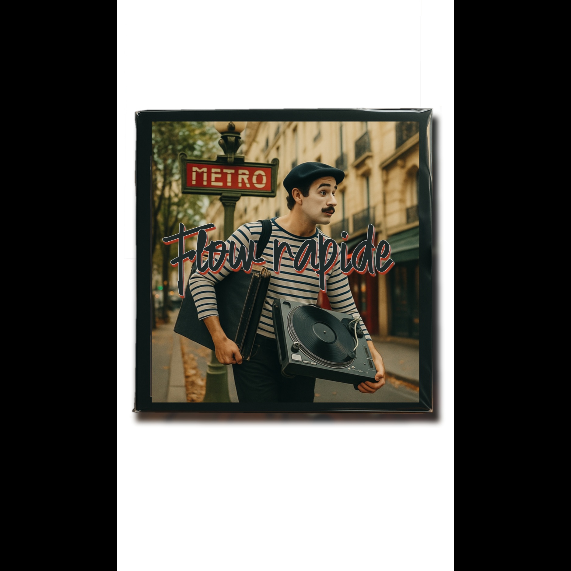 Playful yet melancholic French lo-fi EDM electro-nujazz instrumental scratching track, a Layer jazzy sampled cut and paste sound collage harmonica riffs à la Toots Thielemans over dusty MPC 90s rough heavy gritty boom-bap beats and scratching, upright bass, and brushed glitchy jazz drums, Mix warm analog pads, muted trumpet stabs, and chopped 1960s French film noir atmosphere and glitched radio samples — tiny fragments of dialogue, laughter, and street ambience from Paris cafés, The groove is polyrhythmic and cinematic, fusing downtempo texture with crate-digging humor and swinging glitched scratched 90s hip-hop bounce, Add accordion chords, vinyl crackle, ghostly vocal hums, and scratch solos that make the harmonica dance like a sample, Evoke foggy Parisian nights, nostalgic yet cheeky and fun — a playful jazz collage where chillwave EDM electronica meets vintage French soundtrack funk, End with a softly fading harmonica over vinyl hiss and faint city rain