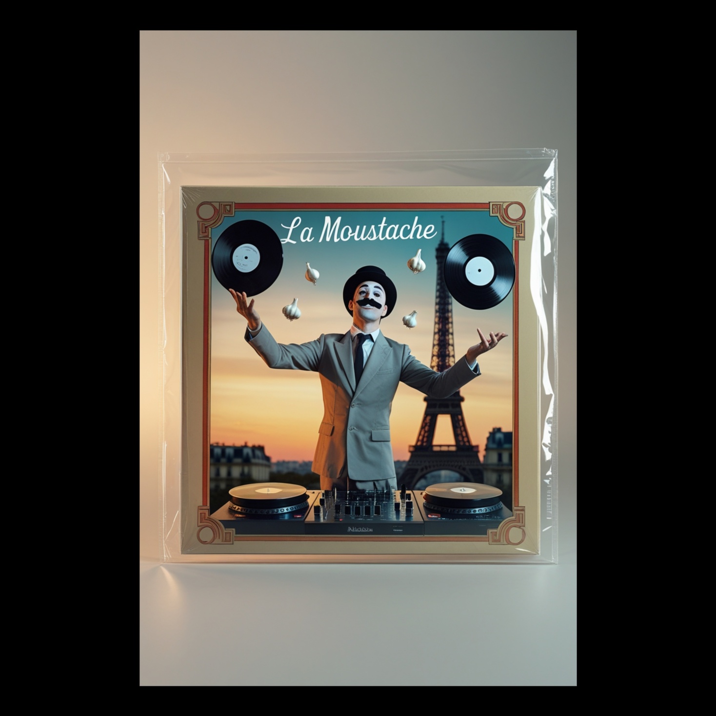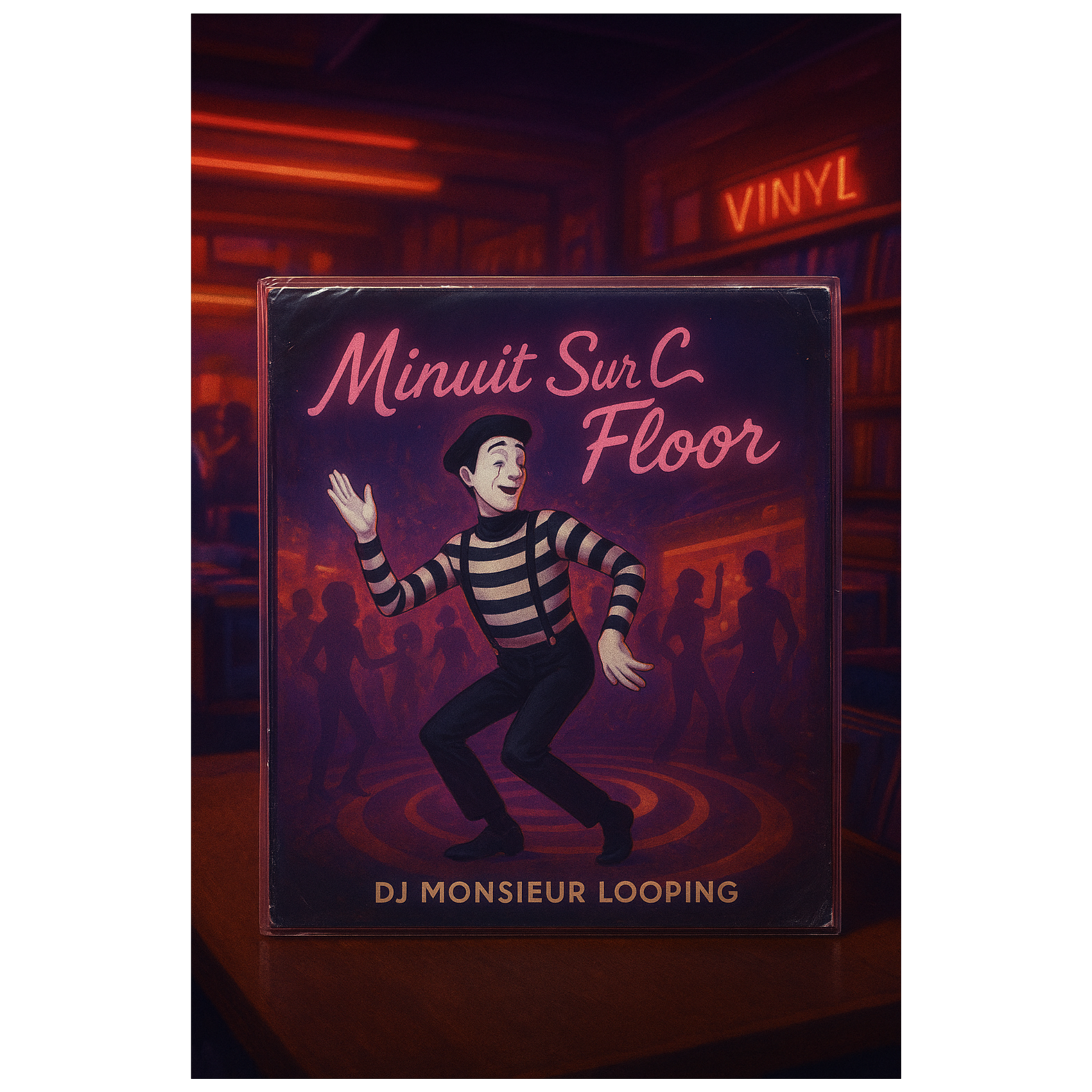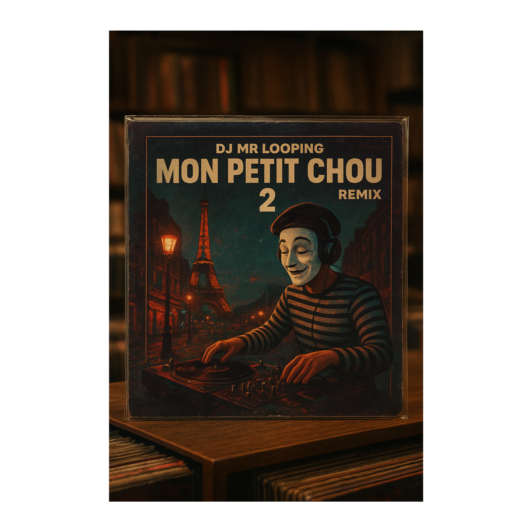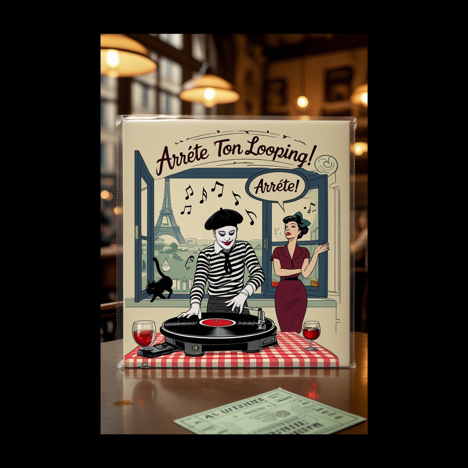 Playful French scratch duet hiphop with jazzy upright bass, muted trumpet stabs, lo-fi accordion loops, classic MPC swing, chopped vintage chanson vocals, dusty vinyl textures, comedic call-and-response using turntable scratches and spoken word, layered radio snippets, cinematic Parisian café ambiance, sample-based funk drums, humorous French food-related quotes, 60s public radio energy, buttery boom bap groove, crate-digging collage, cheeky vintage French soul samples, turntablism battle vibes, vinyl crackle layers, retro accordion chops, MPC-chopped dialogue, layered with record hiss, clinking kitchen sounds and bouncy lo-fi jazz guitar, sample-based narrative, Mo (female) voice: soft Parisian tone, Monsieur Looping (male) voice: scratch-only call-backs from iconic samples, hiphop groove with tongue-in-cheek storytelling flair, ‑pop, ‑funk, ‑rock, ‑metal, ‑techno, ‑house, ‑boring