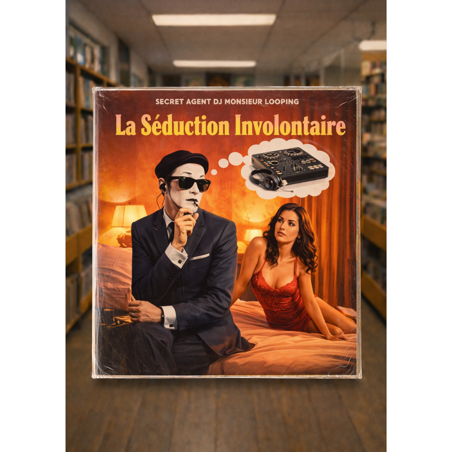 French, glitchy pounding Hip Hop, dirty dark Big Band samples, spy Cinematic feeling, Male Voice, James Bond soundtrack parody, French humor, dramatic trombone stabs, dusty boom bap drums, turntable scratches, French spy radio samples, comedic espionage dialogue, secret agent energy, vinyl hiss, 60s spy jazz fusion, big orchestral builds, cinematic strings, upright bass groove, chopped vocal loops, spy chase tension, lounge funk meets gritty hip hop, French dub vocals, spoken word mission briefings, looped catchphrases, noir horns, mission impossible feel, tuxedo funk, mysterious atmosphere, beat-driven spy jazz for a turntablist agent playful and stylish, playful yet mysterious spy noir mood, Big band samples and car sounds, tires screeching, MPC cutting sound collage, cutting up old big band samples into something new, saxophone trumpet and trombone solos like James Bond soundtrack, ‑pop, ‑boring, ‑rock