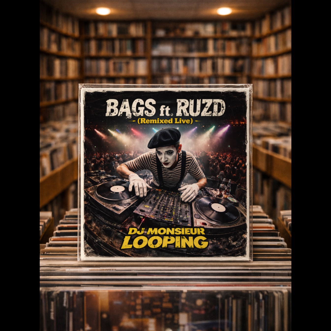 Live French 170bpm D&B Drum&Bass remix, DJ turntablism with scratching and looping, funky sample-based beats, playful French rap vocals, energetic MC hype, live crowd vibe, Funky turntablism live performance, creating D&B beats out of scratching, creating melodies from vocal scratching, vinyl scratching as drums and melody, chopped French chanson loops, scratch built basslines, rhythmic vocal cuts, looping fragments, live beat juggling, dusty vinyl crackle, boom bap groove with experimental scratch textures, call and response turntables, crowd shout samples, French spoken word snippets, analog warmth, funky scratch orchestra vibe, performance energy, DJ Grazzhoppa Big Band meets Cut Chemist, turntable as instrument, scratching syllables into rhythm, hip hop scratch session, playful and groovy, live raw vinyl feel, ‑pop, ‑rock, ‑metal, ‑techno, ‑house, ‑boring, ‑slow, ‑chill, ‑lounge, ‑funk