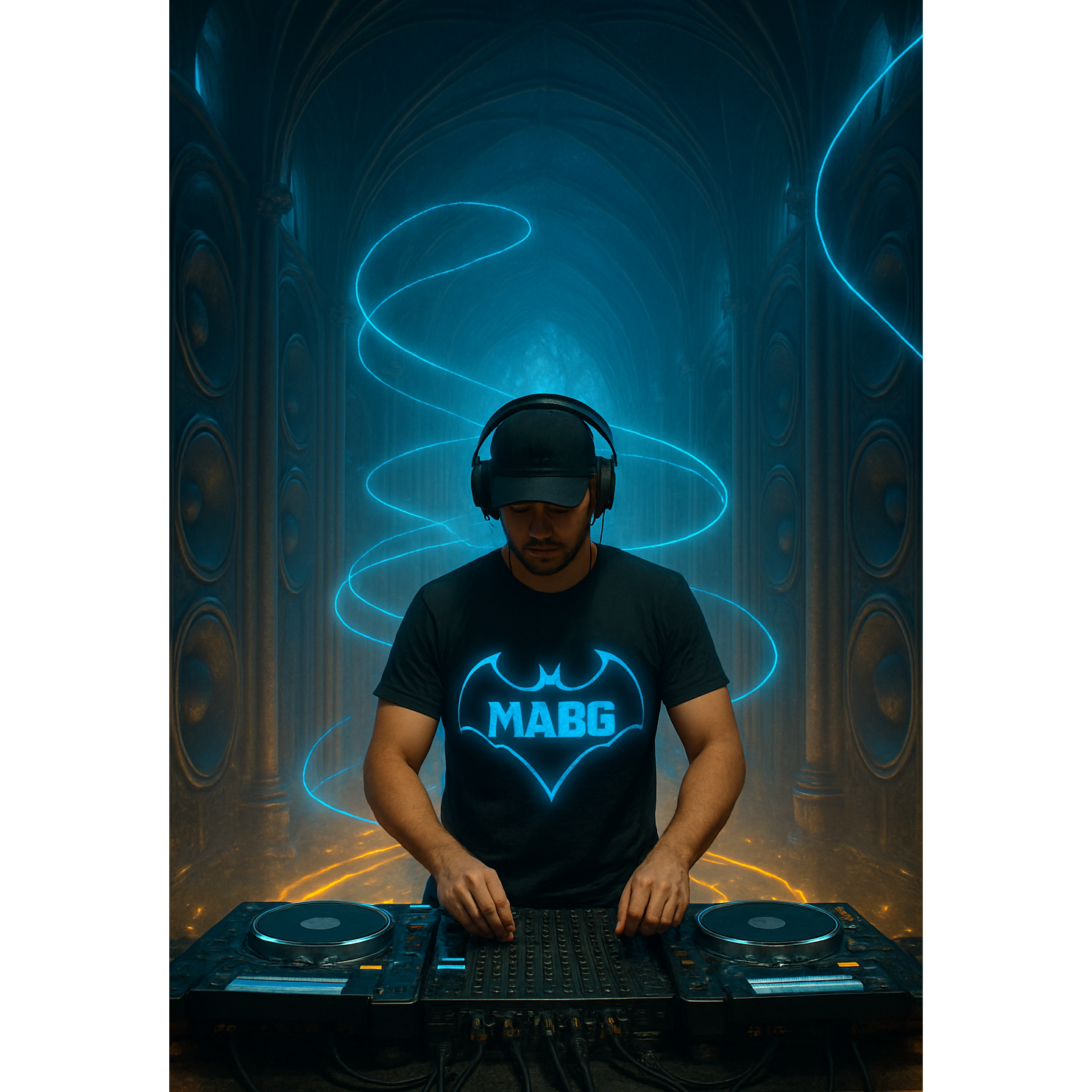 Style by MABG, Create a cinematic dance anthem at 128 BPM that fuses deep bass grooves, majestic orchestral elements, and motivational spoken vocals, The track should open with atmospheric strings and rising pads, gradually introducing dramatic percussion and tension, Build into a powerful, danceable drop with punchy four-on-the-floor drums, heavy sub bass, and sweeping synths, Include spoken vocal lines with filtered FX that deliver a strong message: โWeโre here for the music, Be creative, Be yourself, Be strong, โ