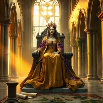 [style: neoclassical chamber folk + mystical baroque] [mood: sacred reverence] [instrument: solo violin, cello, concert harp, frame drum] [bpm: 63] [vocal: male baritone (narrator)] [vocal: female soprano (Empress)] [atmosphere: alchemical temple] [acoustics: stone chamber reverb] [theme: inner empress archetype] [special: violin col legno]