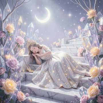 6 minutes long, Audiophile, 24 bit, Mid-tempo Euro-Disco, Modern Talking vibe, 115 BPM, Glassy FM electric piano, Soft galloping bassline, Melancholic baritone storytelling, Multi-layered angelic falsetto chorus, Shimmering synth bells, Romantic fairy-tale atmosphere, Polished 2026 crystal production
