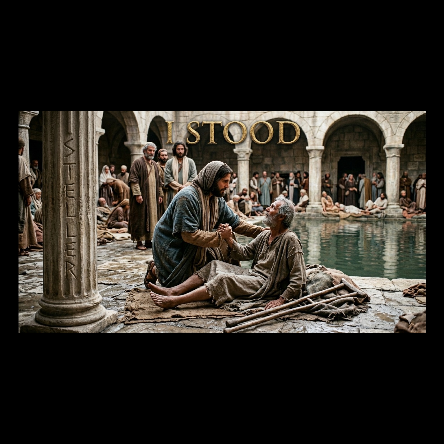 A powerful, emotional Christian ballad told from the perspective of the crippled man at the Pool of Bethesda (John 5), The song begins soft and reflective, expressing decades of waiting, hopelessness, and isolation, As Jesus enters the scene and calls the man to stand, the music builds with a sense of rising faith and inner struggle, The turning point comes when he takes a step — not by strength, but by trust, From there, the song becomes bold and triumphant, full of gratitude and wonder, Instrumentation includes piano, strings, and guitar with subtle gospel or soft rock undertones, A focus on vulnerability, transformation, and the blessing that follows faith-based action, even when it doesn’t make sense, Tone: narrative, cinematic, honest, deeply personal