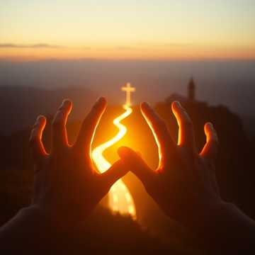 Country gospel song with a young male dynamic operatic vocal, incorporating ambient textures and conductus-style vocall influences, Include rich harmonies, acoustic guitar, piano, fiddle, and cello, The atmosphere should feel heartfelt, uplifting, and reverent, emphasizing emotional storytelling and connection