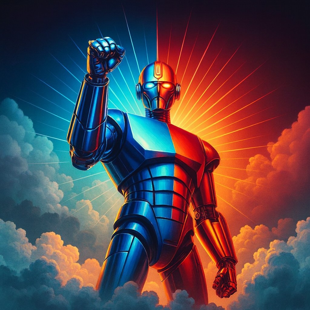 The song erupts with brassy horns, wah-wah guitars, pounding drums, and epic choirs, capturing the fervor of â70s super robot anison, Raw electric guitar riffs drive each verse, intensified by dynamic ney leads and sweeping strings, The chorus explodes with power, delivering heroic tension in layered vocals, turbocharged rhythm, and sudden breaks, before surging to a bold, triumphant finale