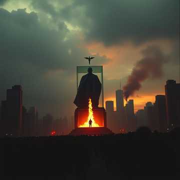 Doom metal, fernwerk cloud rap, cinematic vocals, pitched-down melodic bass guitar, djent voidgaze, lentissimo percussion ensemble, swinging discordant snares, grave slow tempo, gritty rain ambiance, slow galvanizing alternating measures, cambia instrumental variations, catchy rap cadence