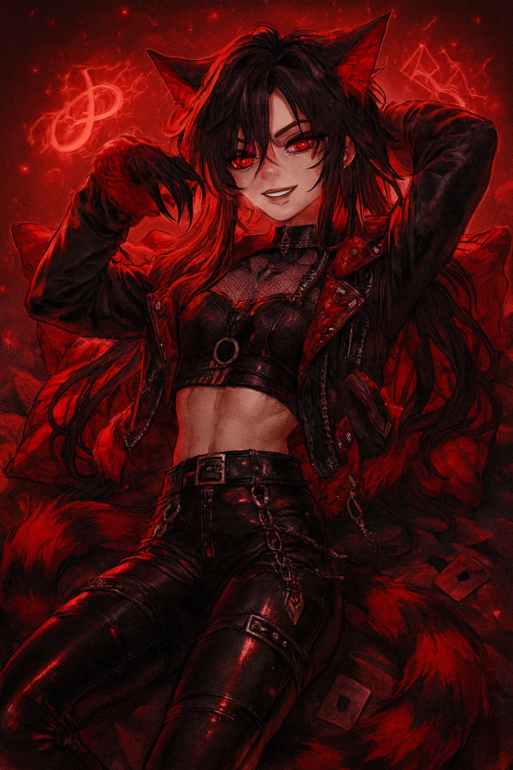 Opens with glitch-processed, thunderous drums and distorted bass undercut by spiky metal guitars and punk-speed fills, Aggressive, husky female rap commands the verses, intercut with processed chants and villainous breakdowns, Ethereal female harmonies add grunge-laced backing, synths seethe beneath for a menacing yet atmospheric texture, The chorus explodes with layered gang shouts, frantic tempos, and colliding electronic-rock elements for a chaotic, cinematic villain vibe