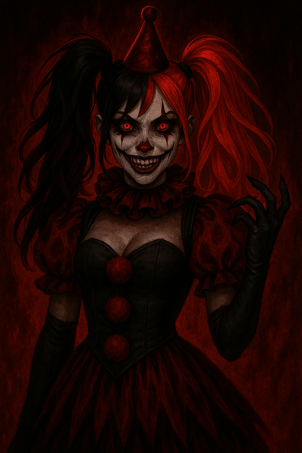 A fusion track unfolds with darkwave’s thick synth pulses, doomcore kicks, jittery darkstep hats, and glitchy bubblegum trap layers, Cute piano loops and mbira riffs intertwine with warped, dreamy pop pads and nursery-creepy synths, Psychedelic textures shimmer behind light acoustic guitar and unpredictable alt-rock/trap beats, driving sudden, jumpy hooks, Flamboyant female vocals blend ethereal harmonies and fierce rap verses, enhanced by lo-fi, delicate percussion, swirling emo/soft-punk/EDM undertones, guitar solos, and scattered drill trap/hip hop bursts—delivering a high-energy, intensely creepy-cute dark electropop