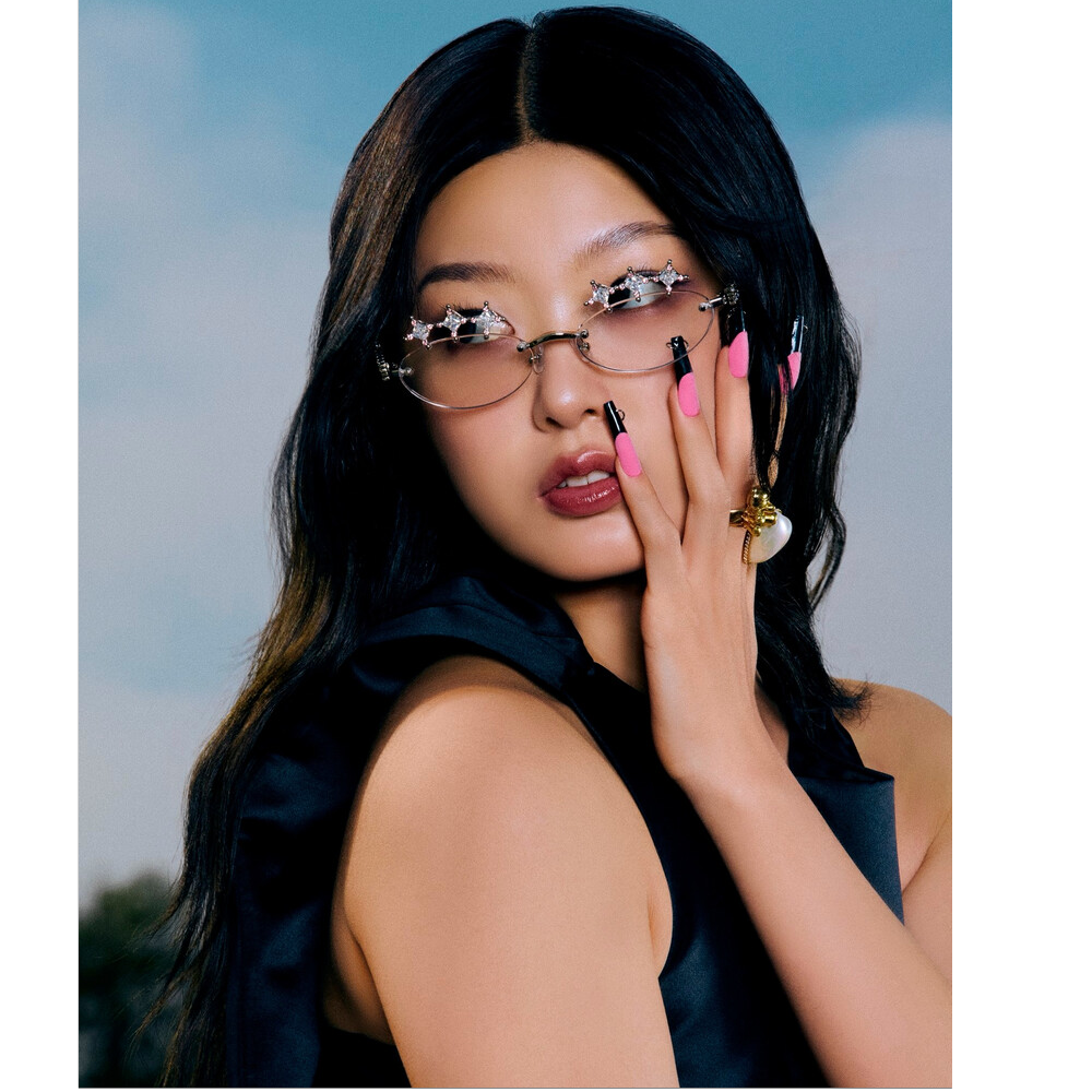 A high-energy, female-fronted K-pop electronic dance track with a strong hip-hop influence, The song features a driving four-on-the-floor beat with prominent kick and snare drums, augmented by hi-hat rolls, trap-influenced fills, and claps on the off-beats, Synthesizers provide the primary melodic and harmonic content, with bright, plucky, arpeggiated synth lines often taking the lead, layered with vocal chops and risers for dramatic flair, A deep, punchy bass synth provides a strong rhythmic foundation, side-chained to enhance the danceable bounce, The female lead vocalist delivers a confident, polished performance with a clear, slightly processed tone, blending powerful singing with rap-like rhythmic delivery and occasional spoken word elements, Backing vocals provide rich harmonies, ad-libs, and call-and-response sections, often in multiple registers, enhancing the energetic K-pop feel, The song structure includes intros, verses, pre-choruses, choruses, bridges, and instrumental