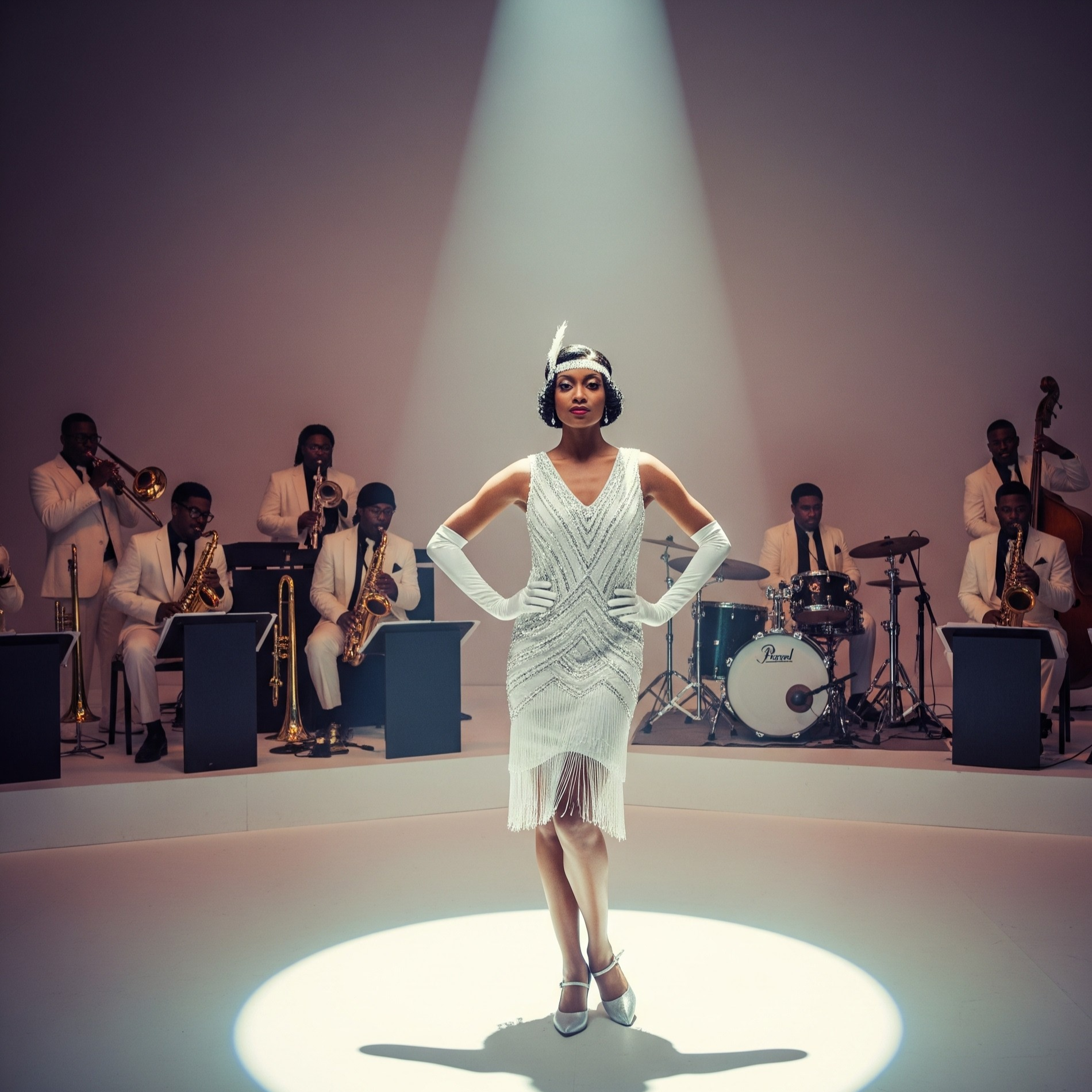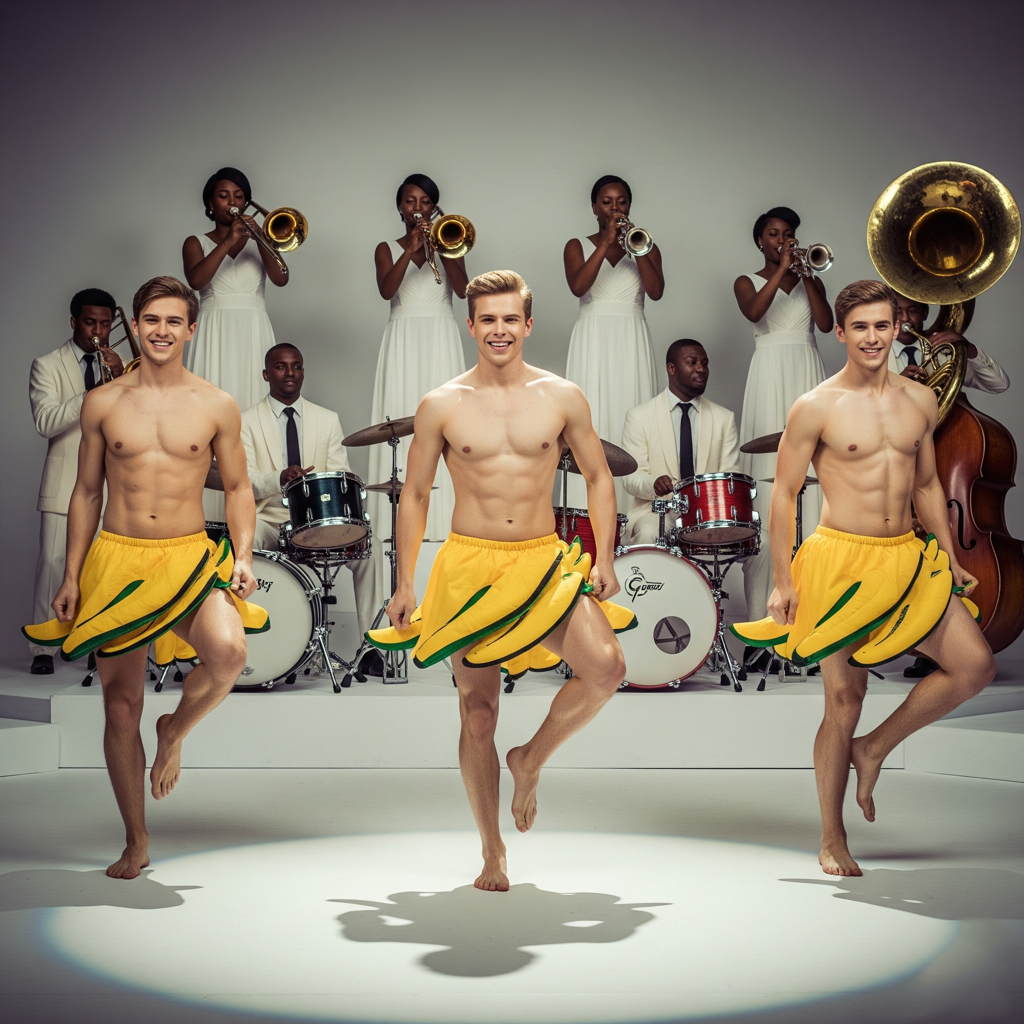 This upbeat, orchestral swing jazz song starts with many Brass, before a saxophone joins in, Saxophone, Trumpets, trombones, tuba, double bass, hard and punchy drums, hi-hats