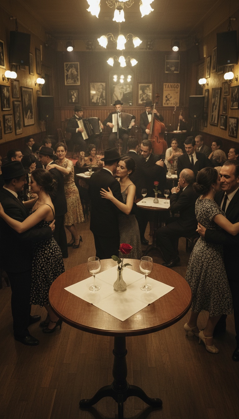 Orchestral tango EDM in Spanish, cinematic and nocturnal, based on a lost-love story set in old city bars and empty avenues, Blend dramatic bandoneon, solo violin, piano, contrabass, chamber strings and subtle brass with deep electronic pulse, dark house beats, sidechained pads, analog bass and elegant modern drops, Start with an instrumental intro, then intimate male lead vocal with emotional restraint, smoky and expressive, building into a powerful anthemic chorus, Mood: nostalgic, sensual, urban, haunted, searching, Tempo around 122 BPM, Sophisticated arrangement with tango phrasing, suspended silences, orchestral swells, and a final cathartic chorus, Production should feel like neotango/electrotango with club energy and orchestral drama, inspired by the fusion space associated with modern electrotango rather than traditional-only tango