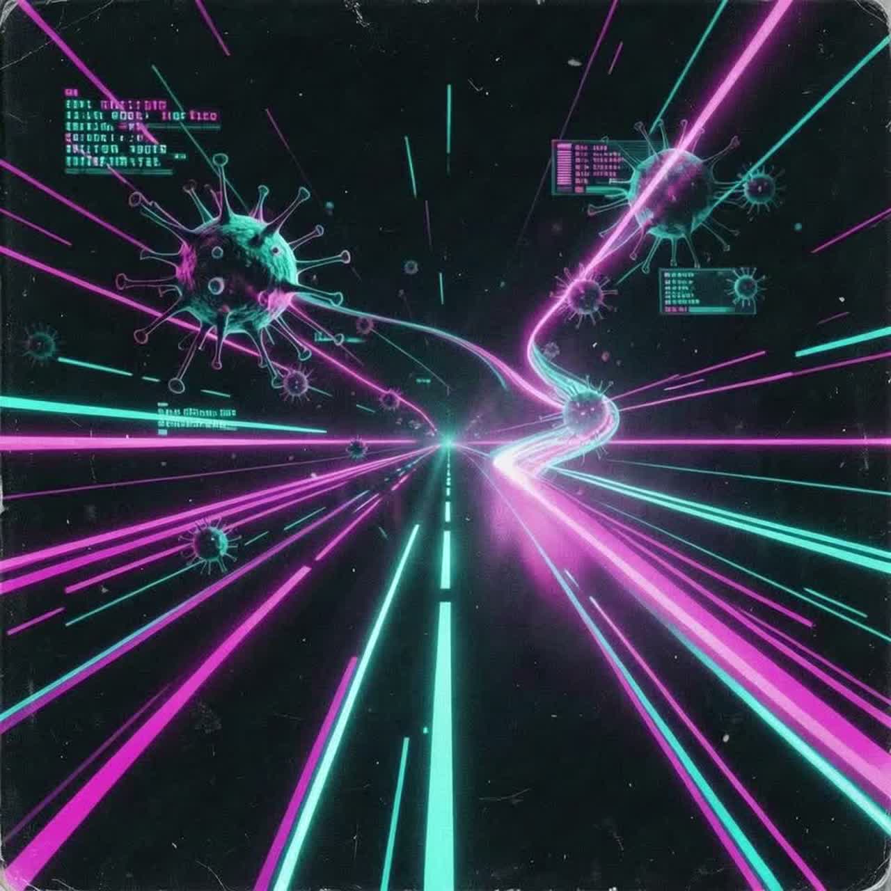 Experimental electronic soundscape, A high-frequency sine wave sweep rises rapidly in pitch, processed with a resonant filter and digital distortion, A low-frequency sub-bass pulse oscillates at approximately 120 BPM, Granular synthesis creates a metallic, shimmering texture that pans rapidly across the stereo field, A rhythmic, percussive click occurs on every quarter note, The piece concludes with a sudden tape-stop effect and a decaying digital delay tail, Key of C minor