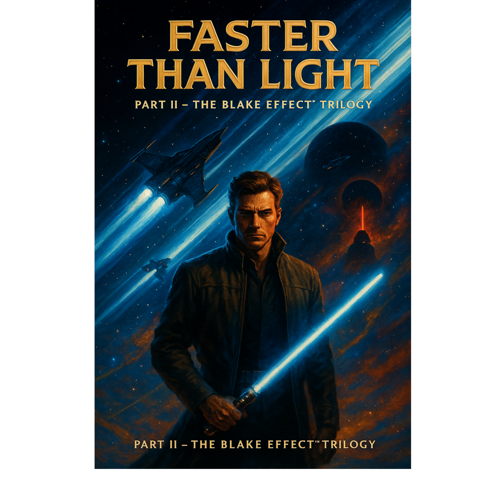 Massive Star Wars–level orchestral score with explosive brass, heroic horns, soaring strings, and thunderous percussion, Add sweeping John Williams–style melodies, powerful choir swells, and dramatic crescendos, Blend in futuristic sci-fi synth accents and pulsing hyperdrive bass, Emotional, urgent, heart-driven, cosmic adventure energy, Music feels like a starfighter chase at light-speed, mixing classic space-opera themes with modern cinematic tension, Vocals: bold, passionate, heroic, filled with destiny and drive, Atmosphere: starship engines, cosmic urgency, blazing hyperspace momentum