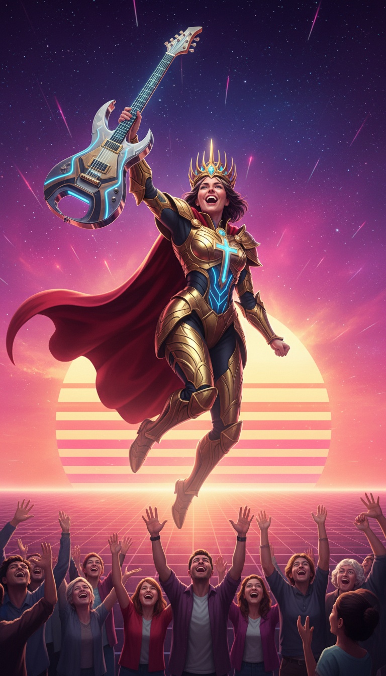 [Coros] Mujeres valientes, tono dulce pero firme, doblando partes clave, victoriosas, Violín eléctrico marcando un motivo heroico, sintetizadores ascendentes, kick techno acelerando, triple bombo rápido, Respiraciones naturales y pausas entre palabras, versos y sobre todo párrafos, Voz masculina firme: habla de levantarse, poder, avanzar, Coros de mujeres dulce y valiente, armonizando; coros femeninos elevan la tensión, Explosión nu metal + synthwave techno pop: Voces unidas, poderosas, Riffs, Violín agudo sobre bajo synth, respiración épica, Final Apoteósico: todos cantan, capas de synth ascendentes, golpe final esperanzador y tremendo, opera metal, future rock, deep brass, synthpop, cambio de clave épico, female vocals, drum and bass, electronic, guitar