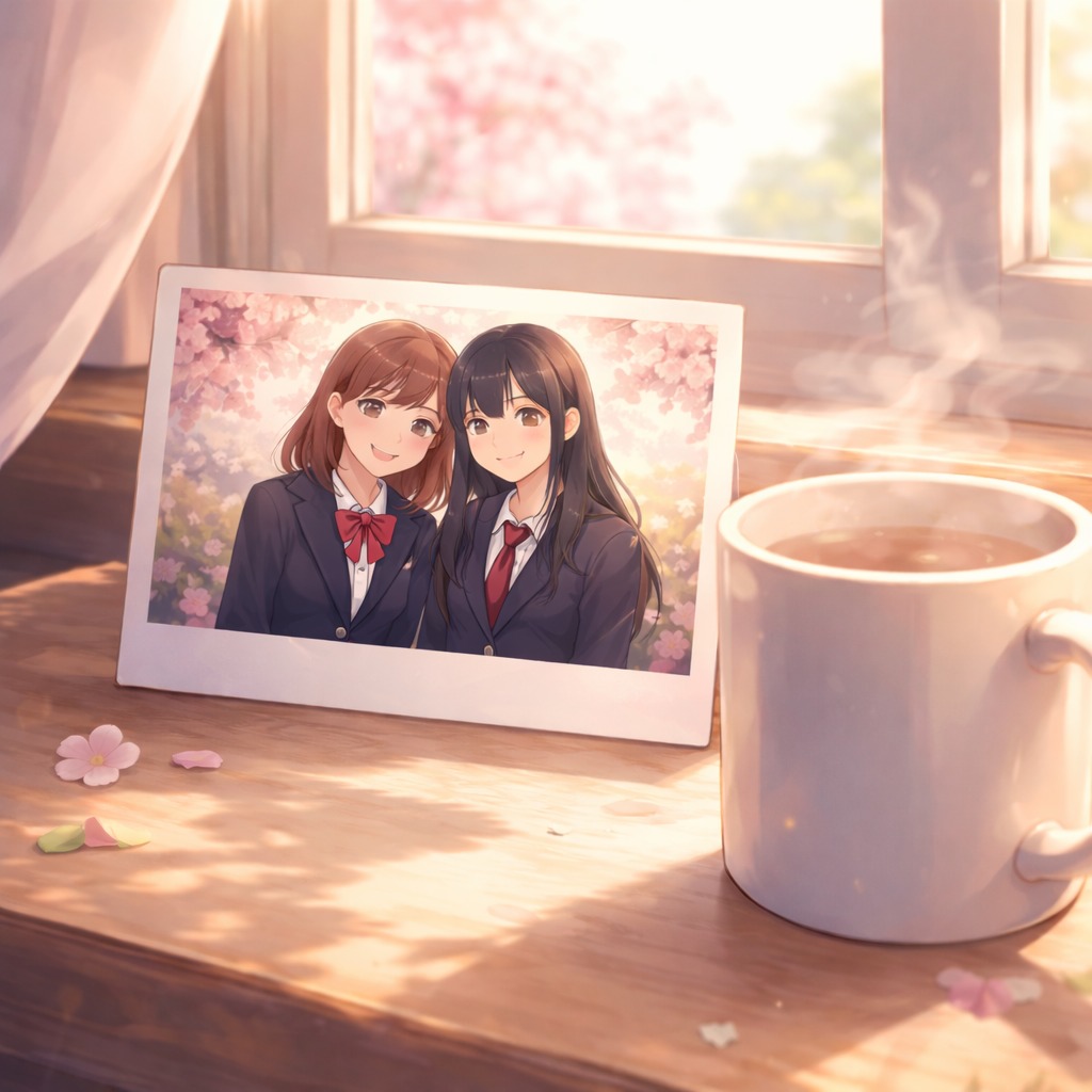 Create a bright and emotional J-pop rock song about two girls feeling the soft line between friendship and love, The music should be light, youthful, and gently exciting, like warm after-school sunlight, Use a fast tempo around 170 BPM in 4/4 with lively 8-beat rhythm, Major key, sweet but slightly bittersweet, Include clean electric guitars, mild overdrive, simple bass and drums, Add soft vocal harmonies in the chorus, The melody should be catchy and tender, showing shy affection and playful energy, Keep the mood dreamy, innocent, and heartwarming—like a sparkling pop-rock moment of quiet love discovery, female vocals