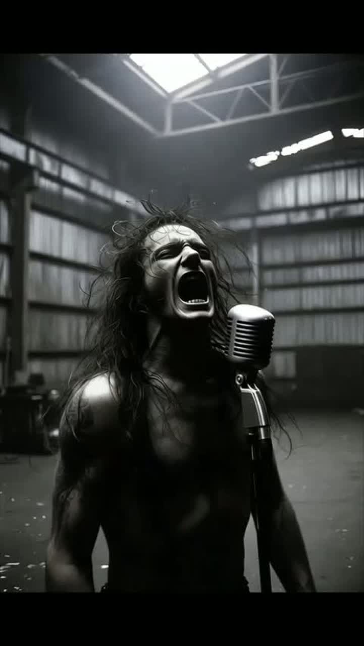 Early 80s thrash metal energy — raw and aggressive underground metal band on a dark club stage, fast palm-muted guitar riffs, relentless drumming, snarled shouted vocals, Denim and leather, sweat and smoke filling the air, chaotic headbanging crowd, Gritty analog sound, minimal polish, high speed and pure rage, Lyrics driven by anger, defiance, control, and inner fire, Street-level intensity, youthful rebellion, no compromise, no mercy, Kill-’Em-All-era thrash metal atmosphere, live concert feeling