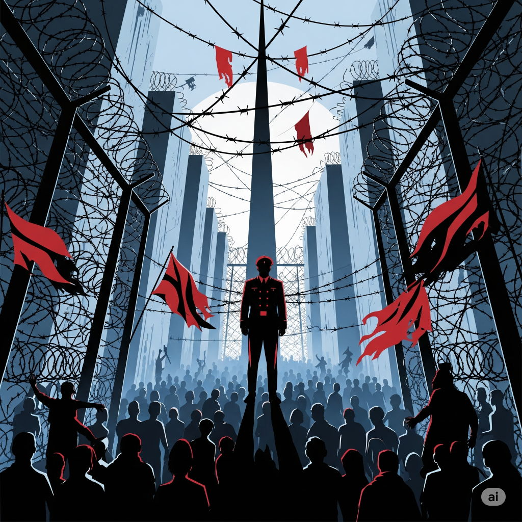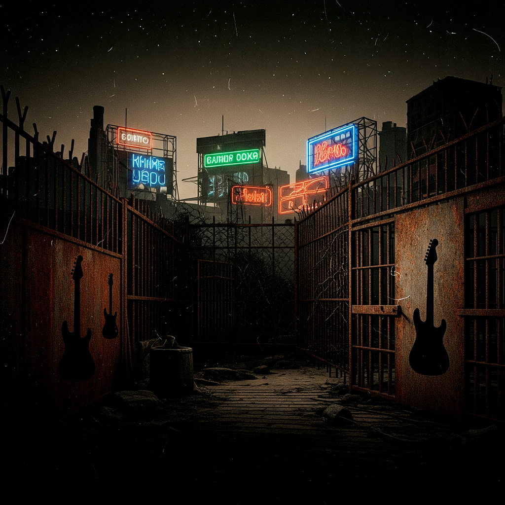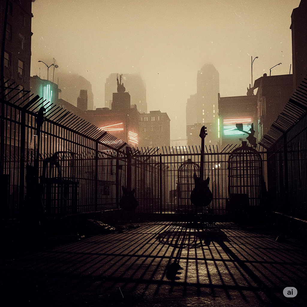 [Style description: Post-punk with art-rock and psychedelic influences, delivering a cold, atmospheric, and emotionally tense sound, Tempo 130 BPM, 4/4 time, blending C major and A minor modal tones, Male vocals are soft, slightly raspy, intimate, clear, and expressive without harsh screams, Instrumentation is minimalist: electric rhythm and lead guitars with overdrive, delay, and fuzz; mildly distorted bass; acoustic drums with tight snare and steady hi-hat, Guitar tones vary: fuzzed lead in intro, warm overdrive in instrumental, clean echo in coda, No synths, emphasizing raw, organic texture, Postproduction uses moderate compression, short reverb, and subtle slapback delay on vocals, creating a deep but restrained atmosphere matching the lyrical tension, Harmony mixes modal A minor and C Ionian with color chords, Structure: intro, four verses, instrumental, coda with fade-out, Mood is melancholic, slightly anxious, sincere, reflecting inner struggle and confinement of “zoo life, ”]