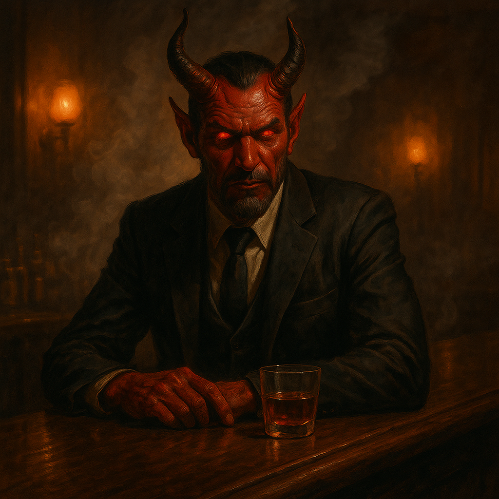 Dark outlaw country with raw storytelling vocals, steady acoustic strums, upright bass, harmonica and barroom gospel backing chants, The sound is dusty, whiskey-soaked, and gritty, like a saloon hymn echoing through the Wild West