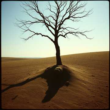 A slow, philosophical Italo Western ballad with gritty, reflective male vocals Featuring twangy electric guitar, mournful harmonica, desert wind effects, cinematic strings, dusty drums, and haunting whistling, The lyrics tell of existential loneliness, regret, and the futility of life in a barren land, Evokes the mood of a lone rider questioning meaning under a burning sun, Moody, sparse, atmospheric, ghostly and poetic