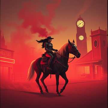 Opening with distorted electric guitars and growling harmonica, the tempo locks in at 100 BPM as galloping drums and heavy toms surge forward, Gritty female vocals ride over a dense mix; the pre-chorus adds cinematic swells, Final chorus erupts with screamed backing chants and cowboy boot stomps thundering atop a massive low end, amplifying the outlaw edge
