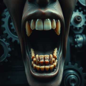 "genre": "nu metal + industrial metal + groove metal, dark cinematic edge", "tempo_bpm": "90-105", "style": "aggressive, unfiltered, syncopated riffs, slap bass forward, tribal tom grooves, eerie transitions, sudden drops", "mood": "tense, emotionally unstable, rage and sorrow, inner torment", "guitars": "down-tuned 7-string, percussive stop-and-go riffing, noisy feedback accents", "bass": "distorted slap bass, gritty metallic click, very prominent, drives groove", "drums": "raw acoustic kit, punchy snare, tom-heavy tribal patterns, minimal cymbals", "vocals": "90s nu metal male: broken whispers, nasal whines, guttural growls, choking breaths, pitch shifts, childlike mutters, vocal fry layers, thick chorus screams, upfront in mix", "textures": "industrial noise, ambient dissonance, silence gaps", "mix": "loud, punchy, modern clarity, wide stereo, gritty warmth, live feel"
