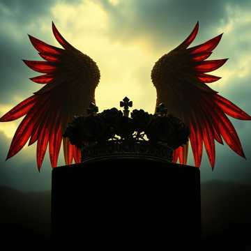 Anime opening symphonic metal/rock with gothic pop hooks; theme: predatory power, devotion, conquest, dark coronation, Tempo 168–176 BPM, 4/4, tight staccato riffing + orchestral stabs, Key feel: minor with chromatic runs, Intro (0:00–0:12): distant choir + harpsichord sparkle → explode into full band, Verse 1: palm-muted chugs, syncopated kick, vocal sharp/taunting, Pre: rising strings, snare build, harmony stack, Chorus: soaring anthemic melody, double-time hats, big octave guitars, choir pads, Post-chorus: chant gang vox + brass hits, Verse 2: add counter-melody lead guitar + more orchestral flourishes, Bridge: half-time breakdown, ominous whispers, tension swell, Final chorus: modulated lift + high harmony, then fast instrumental run + outro hit, Production: layered choir, pipe-organ texture, tremolo leads, tight 808-ish sub under bass, dramatic stops, polished J-rock mix