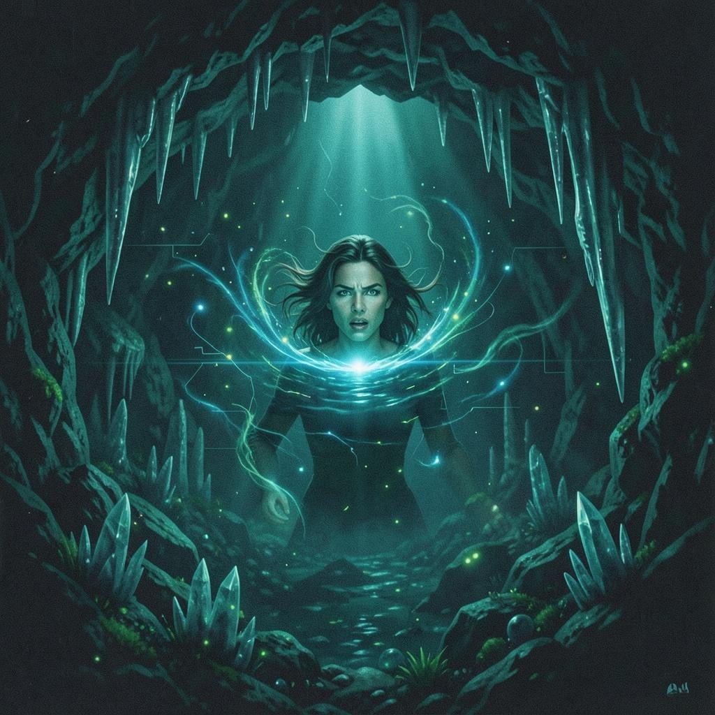 Cinematic Primal Folk, 108 BPM, High-energy, dark and dangerous, Lead vocal: Powerful, raw female "White Voice" (traditional Slavic/Ethnic style), intense and piercing, Instrumentation: Thunderous primal skin drums, heavy wooden percussion (log drums), deep guttural sub-bass, and haunting low bamboo flutes, Production: High-fidelity, aggressive cinematic sound design, Intro features a terrifyingly loud roaring waterfall SFX, Verse 2 uses a dramatic muffled low-pass filter to simulate water pressure, while keeping a fast, relentless heartbeat-like drum pulse for maximum tension, Mood: Ritualistic, adrenaline-fueled, ancient, and epic, Sound aesthetic: Deep prehistoric jungle, obsidian rocks, bioluminescent water, Backing vocals: Deep male rhythmic chants and whispers, Outro features sharp ritualistic vocal stabs over crushing water pressure sounds, Polish lyrics about an ancient initiation, Dark "obsidian and deep emerald" sonic atmosphere, Driving 4/4 ritualistic groove