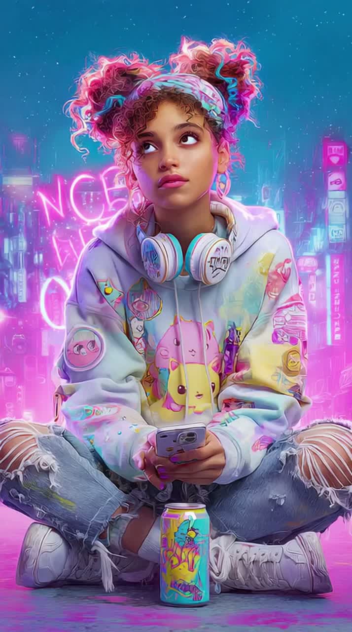 A hyper-catchy French teen pop track (around 125 BPM) designed for Gen Alpha, blending kawaii pop, hyperpop, and dance influences, Female teen vocals with a sweet but sassy tone, full of playful ad-libs and slang, The song opens instantly with a viral hook — short chant-like phrases with words like «Ouais ouais — la vie est à nous !», repeated with a meme-like energy, Verses are fun and fast, mixing melodic singing with rhythmic spoken lines, The chorus is explosive, with a mantra hook repeated multiple times (easy to chant on TikTok), Instrumentation features bright synth arpeggios, bubblegum hyperpop effects, distorted bass drops, and glitchy sound FX (like phone notifications, cartoon meows, or emoji sounds), The mood is joyful, cheeky, futuristic, and addictive — designed for short-form videos and viral dances