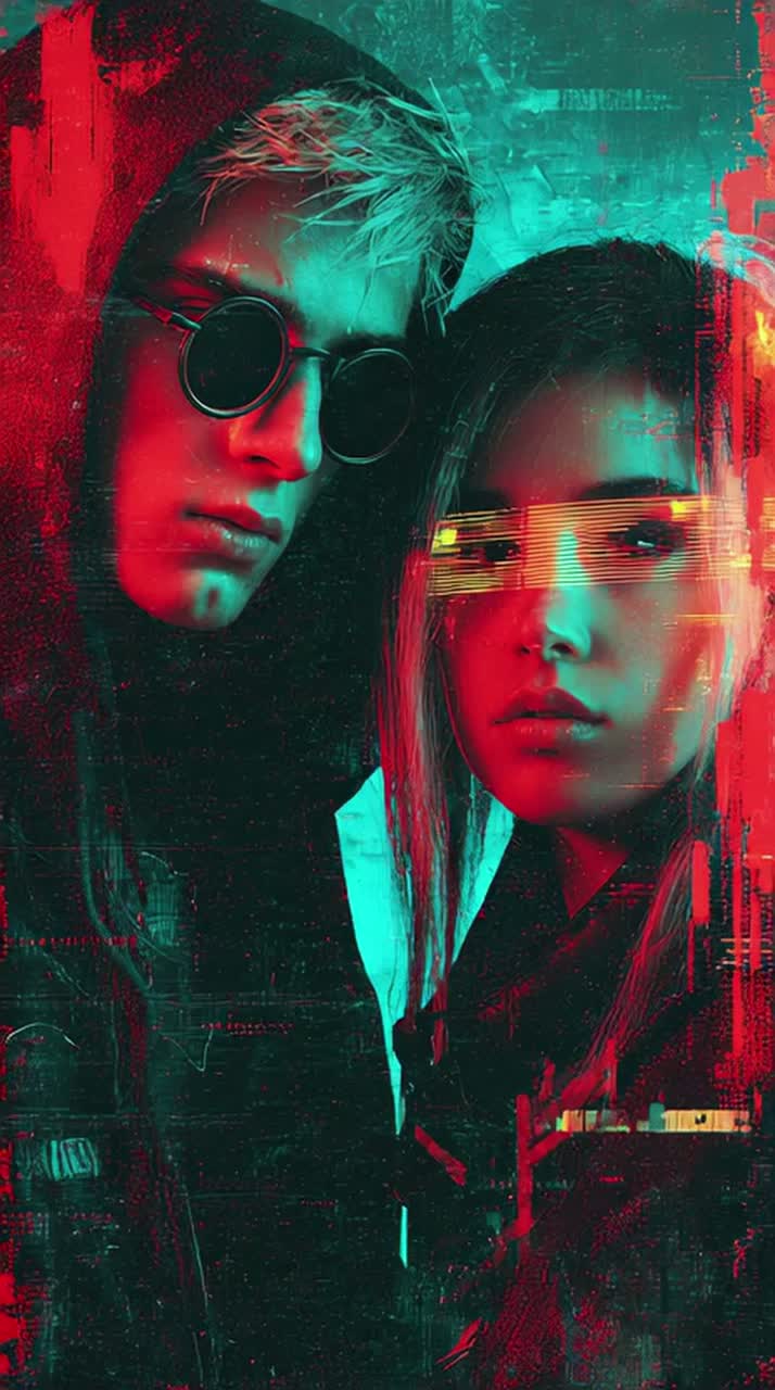 A dark, cinematic French rap/alt-pop track (around 110 BPM) with cyberpunk and trap influences, Male lead vocals with a deep, gritty, confident delivery, mixing short rap lines with chant-like melodic hooks, The lyrics tell the story of a man and his girlfriend punishing internet scammers, built around the hook “Attrape-les tous, baby, c’est validé !” and the final chant “Hack the fake — love is real, / Cut the lies — the truth can heal, ”, Instrumentation features heavy 808 bass, glitchy trap drums, distorted synth arpeggios, and industrial cyberpunk textures (glitch effects, dial-up tones, typing sounds), Verses are minimal and brooding with space for rhythm, while the chorus expands into a powerful, hypnotic anthem, The mood is dark, rebellious, and cinematic — a hacker love story reimagined as a Gen Z club anthem