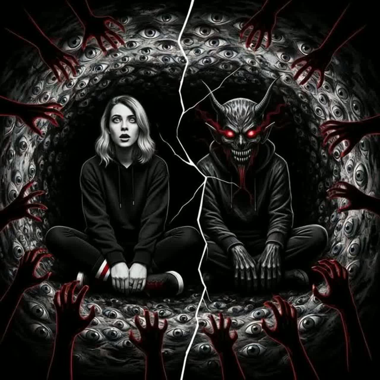 Horrorcore, Experimental Industrial, Distorted Bass, Screeching Violins, Whispering Ad-libs, Panic-Inducing, 85 BPM