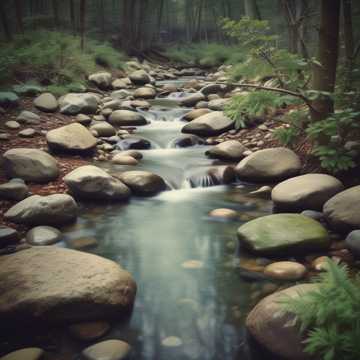 instrumental lullaby, Sleepy, calming chimes, acoustic guitar, flowing water sound, nature sounds, distant birds