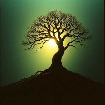 Create a grand symphony inspired by the oak tree, Orchestration: deep cellos, double bass, French horns, timpani, majestic brass, and wide strings, Mood: power, grounding, timeless strength, Dynamics: begin with a slow, solemn string motif (roots), gradually build with horns and timpani (trunk rising), expand into full orchestral grandeur (crown of the oak), finish with a quiet return to strings (eternal presence), Tempo: lento → allegro maestoso → adagio, Emotional effect: feeling of unshakable roots, courage, and inner stability