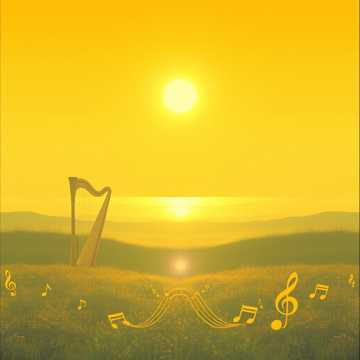 Create a radiant symphony inspired by the Sun, Orchestration: trumpets, violins, harps, children’s choir, shimmering percussion (bells, triangles), Mood: joy, awakening, golden brilliance, Dynamics: open with a single violin rising (first ray), add harp glissandos (morning light), children’s choir joins softly (new day), expand into full radiant orchestral explosion with brass and percussion (midday sun), dissolve into gentle strings and bells (sunset glow), Tempo: moderato → allegro → adagio, Emotional effect: pure joy, rebirth, gratitude for life