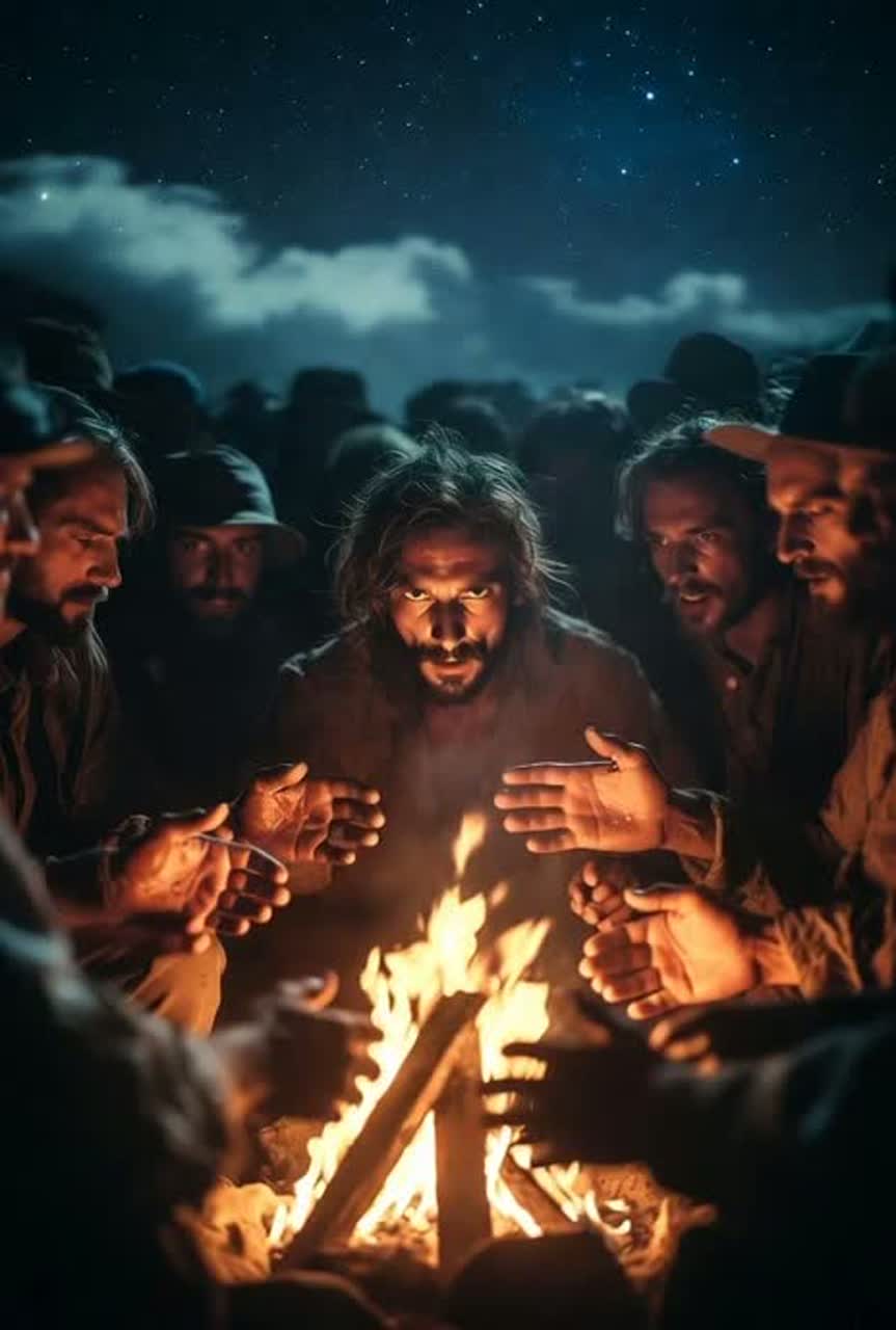 A worship rock anthem fused with low-pitch dubstep opens with ambient choir pads and orchestral strings, slowly building tension, Massive sub-bass drops and wobbly low-end growls drive a powerful groove beneath reverent electric guitar leads, Layers of horns and soaring strings add mythic weight, intensifying each festival-style build and explosive drop, The tenor vocal is awestruck and sly, weaving through resounding textures, while natural reverb evokes open plains at dawn, The song’s structure alternates anticipation and euphoria, peaking in choruses rich with sacred grandeur and ecstatic surrender