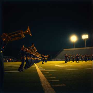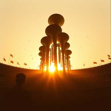 rock ballad brass arrangement, 1970s power ballad, emotional brass crescendo, halftime show drama, triumphant horn section, dynamic swells, stadium rock instrumental, building intensity, no vocals