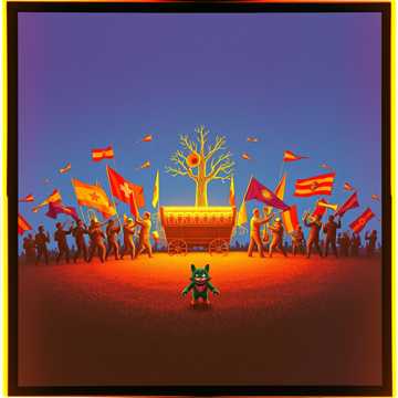 upbeat brass band, happy trumpet melody, celebratory marching band, fun party anthem, YES style harmonies, high soaring tenor vocals, prog rock energy, complex vocal harmonies, joyful reunion song, uptempo singalong, triumphant brass, stadium party, feel-good anthem, 1970s prog rock, bouncy and energetic