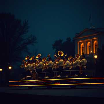 - STRONG TRUMPET MARCHING BAND throughout - brass must be prominent!