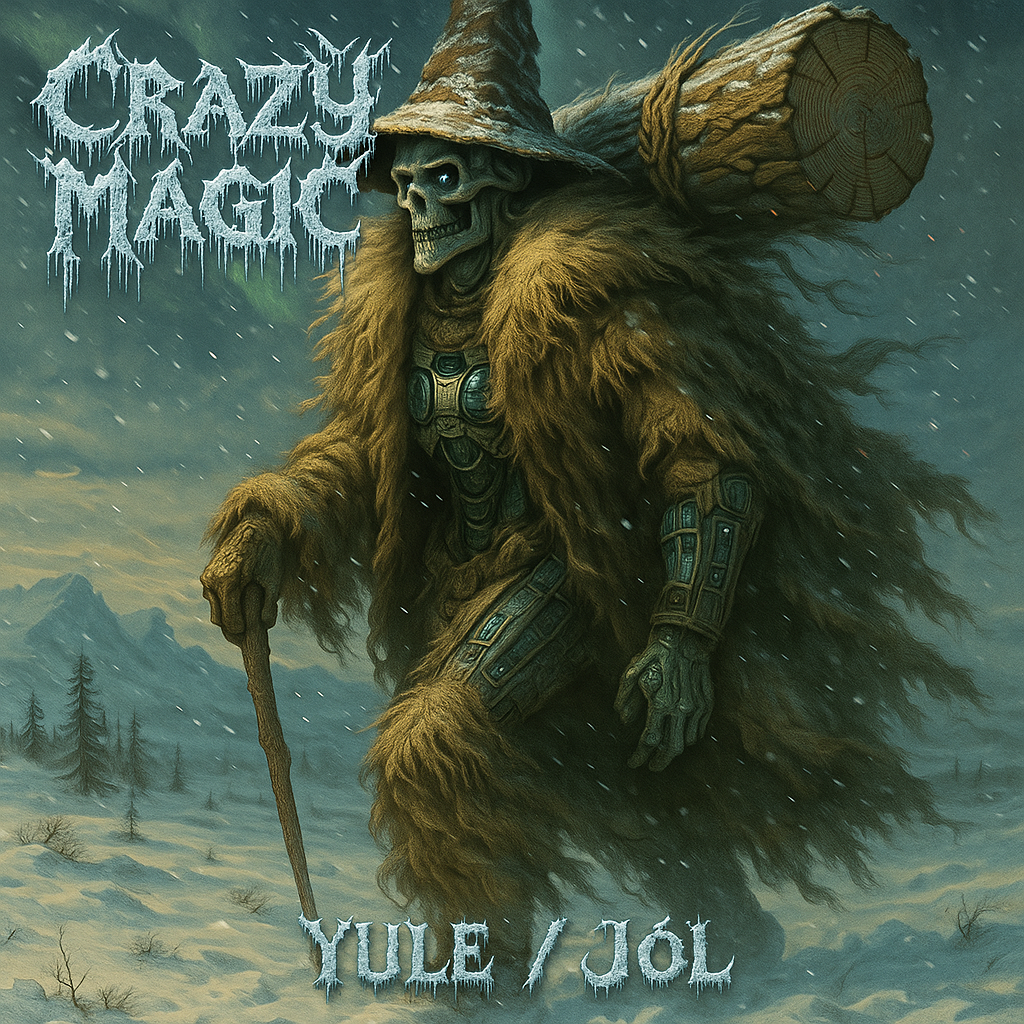 Blackened Folk Metal, Christmas Carol, powerful male vocals, aggressive metal-style vocal fry, uilleann pipes, nyckelharpa, nature metaphors, steady rhythm, old-world style, acoustic strings, Nordic tonality, mixed vocals, tribal percussion, yoik vocals, ambient landscape