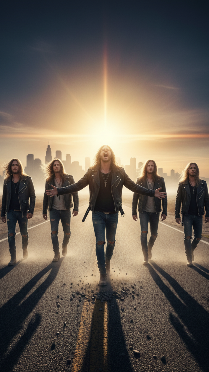 This anthemic Modern Pop-Rock track opens with atmospheric, effects-laden piano that sets an emotional mood, Verses are intimate, led by breathy male vocals and sparse textures, Drums and a syncopated, driving bassline kick in, building to a soaring, electrified chorus rich with layered guitars, punchy rhythms, and raspy, powerful vocals, Melodic guitar solos soar between choruses, and dynamic shifts keep the energy stadium-ready and polished