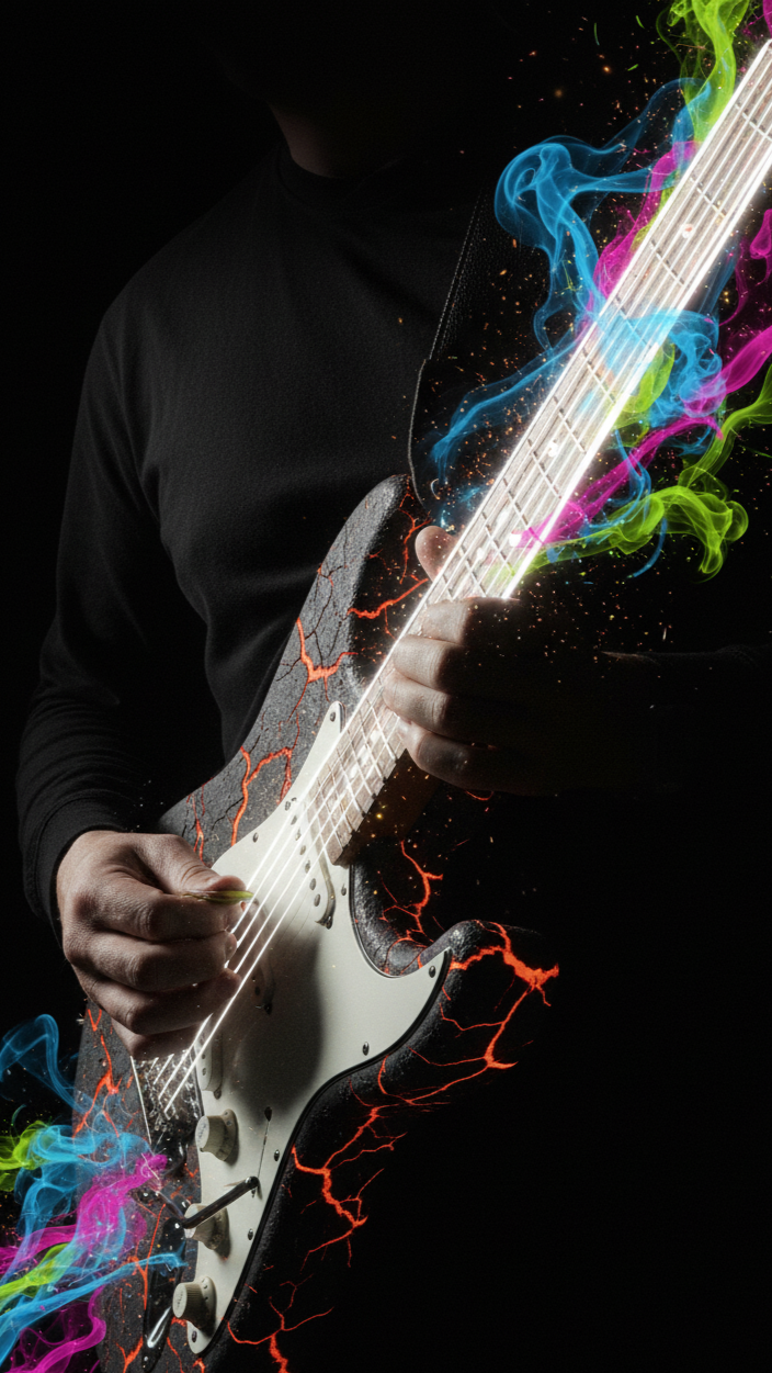 A punchy intro leads with electric guitar riffs and crisp drums, merging into vibrant verses with tight bass lines and subtle synth layers, The chorus explodes with layered vocals and anthemic chords, while a dynamic bridge spotlights a soaring guitar solo before a high-energy finale