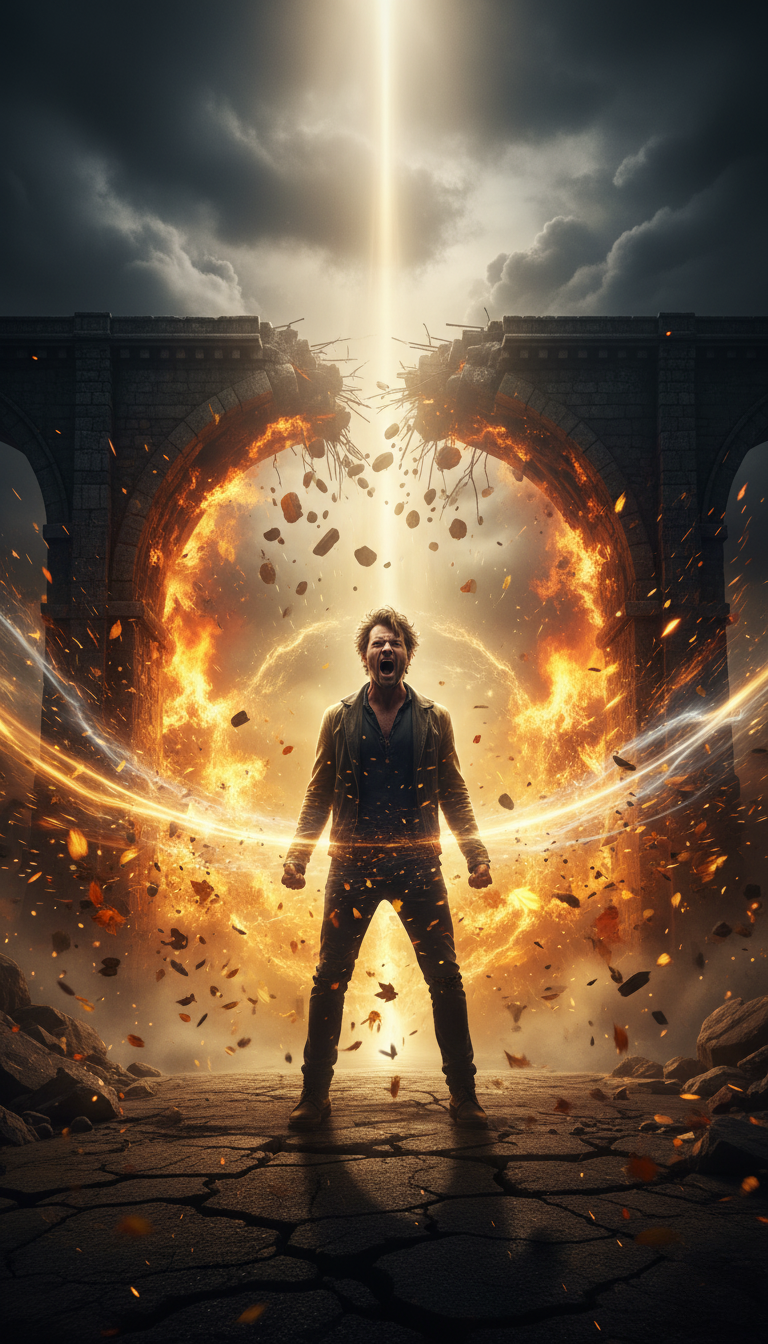 This emotional pop-rock cinematic power ballad opens with sparse, fragile piano and raw, airy male vocals, growing from whispered tones to raspy belts, Layers of orchestral strings and electric guitar swell after each verse, Drums thunder beneath the belted chorus, all climaxing in an epic, wailing guitar solo backed by a fully built orchestra for intense, stadium-sized grandeur