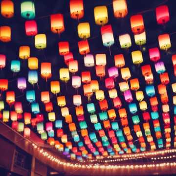 Traditional Japanese Bon Odori rhythm with taiko drums, shinobue flute, shamisen, looping festive beat, joyful call-and-response chants, nostalgic festival atmosphere, 120 bpm