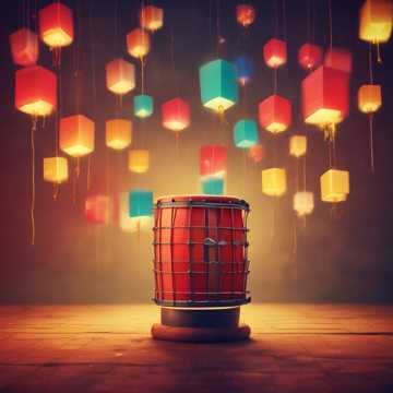 Traditional Japanese Bon Odori rhythm with taiko drums, shinobue flute, shamisen, looping festive beat, joyful call-and-response chants, nostalgic festival atmosphere