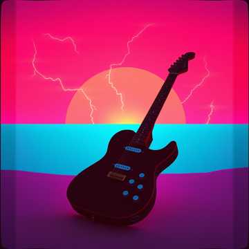 Symphonic rock fusion, distorted electric guitars with orchestral backing, bold strings, heavy drums, epic cinematic power