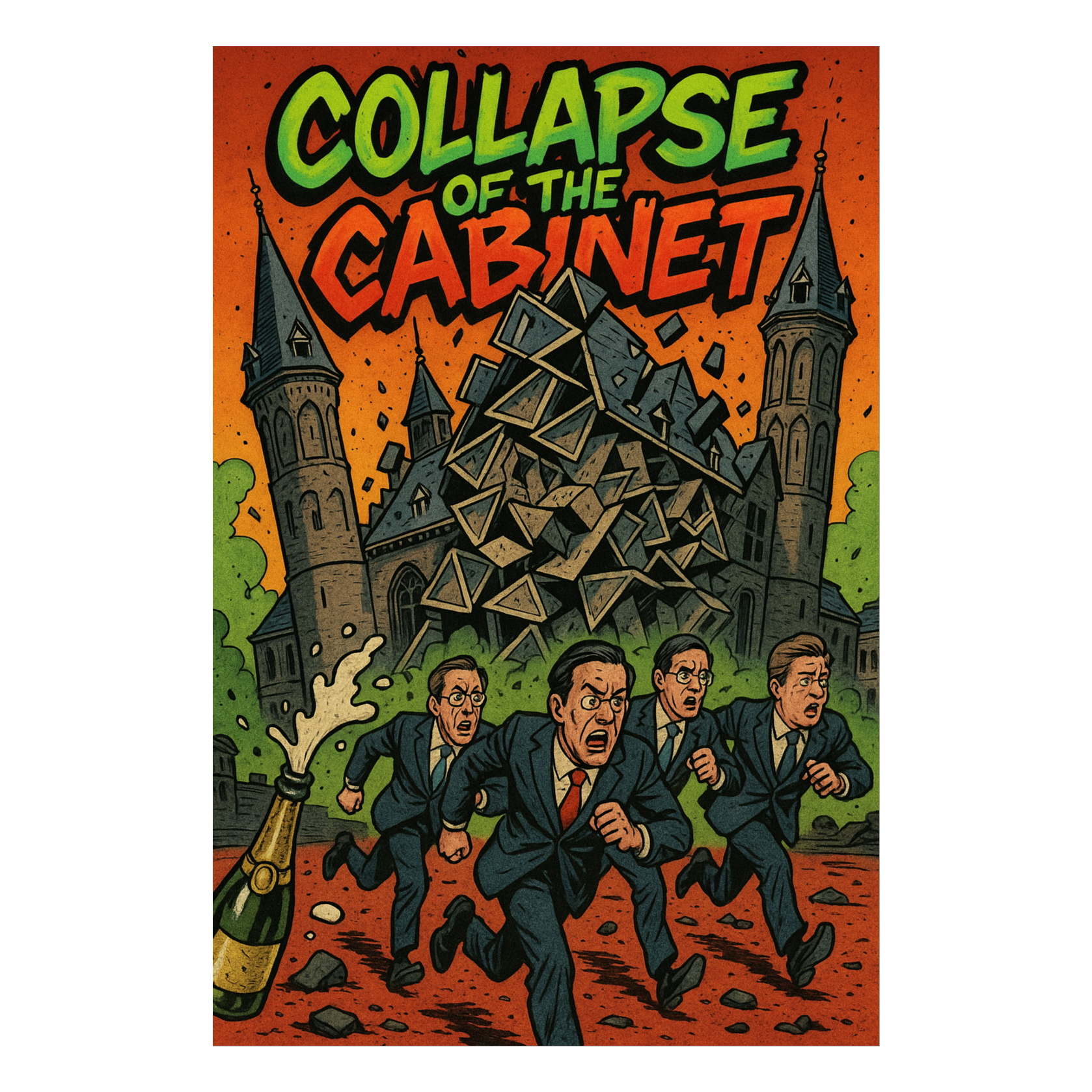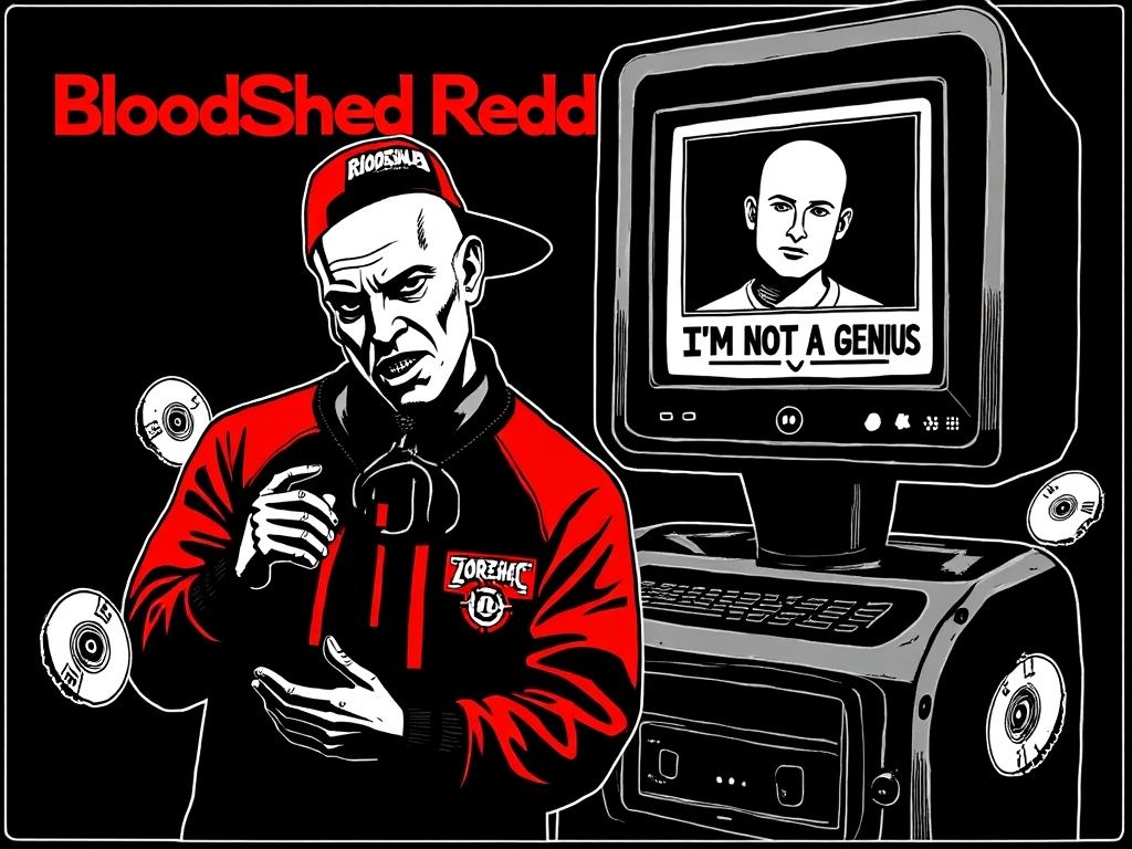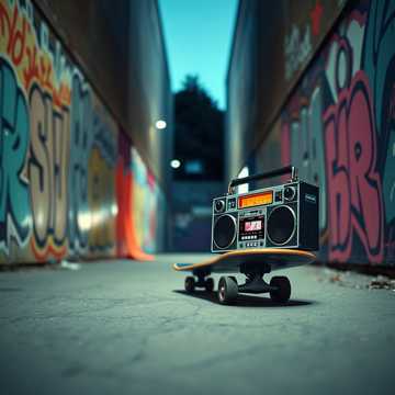 Male rap verses with chant-style gang vocals on the hook, live breakbeat drums, gritty room mics, sharp handclaps, and a rebellious skate-video attitude, Add raw humor, DJ backspins, crowd energy, and dusty vinyl samples, Tempo 104 BPM, The vibe should feel like a wild underground cypher — stacked ad-libs, loose timing, and real group energy