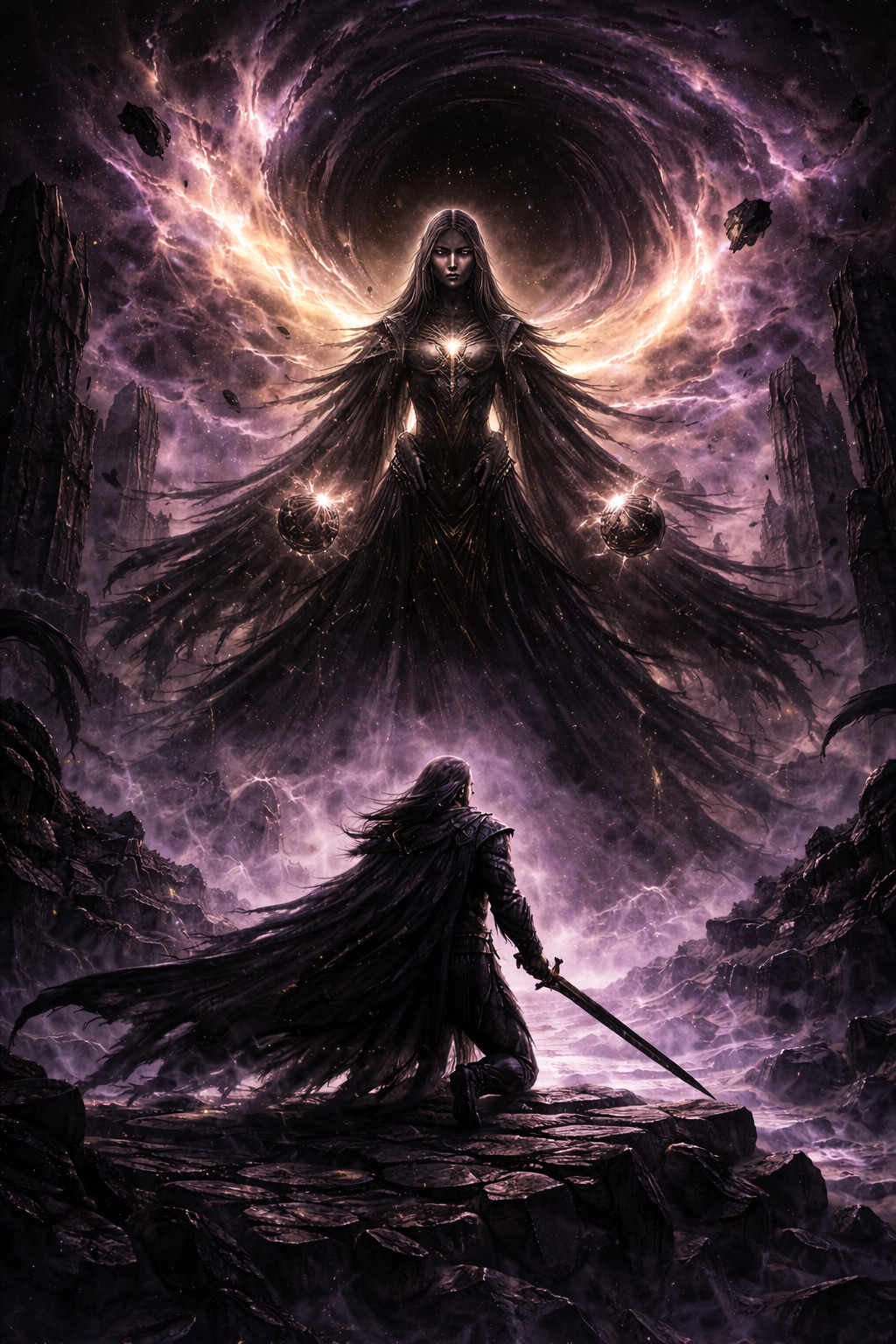 Inevitable, majestic, solemn, cosmic authority, quiet dominance, timeless, mythic calm