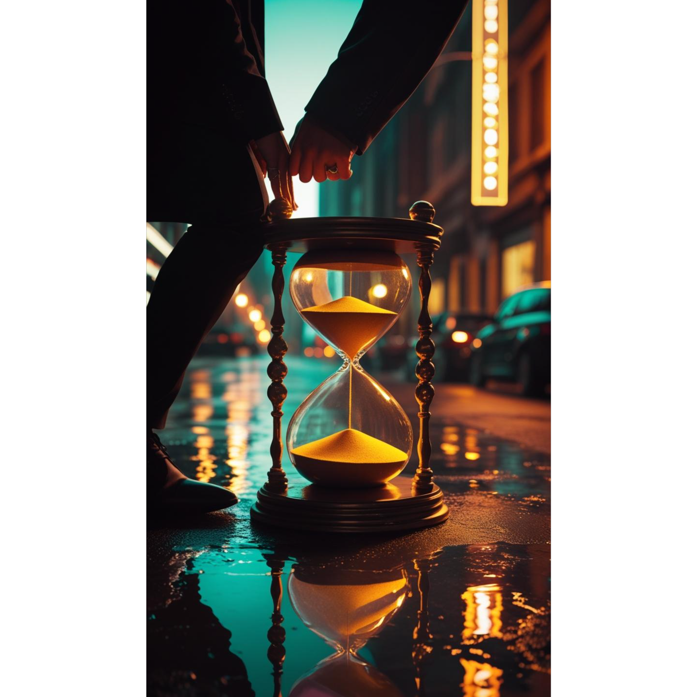 Modern bachata with a male lead vocal in a raw, raspy, and deeply emotional style, Verses should be soft and intimate, choruses powerful and expressive, Instrumentation combines classic bachata guitars, bass, bongos, güira, congas, with subtle cinematic strings, pads, and percussive ticking motifs to evoke the hourglass metaphor, Include a short instrumental intro, breaks after choruses, and a stripped-down bridge before the final chorus, Add harmonies and ad-libs in the final choruses for dramatic effect, Warm, spacious mix with lead vocal front and center, Structure: