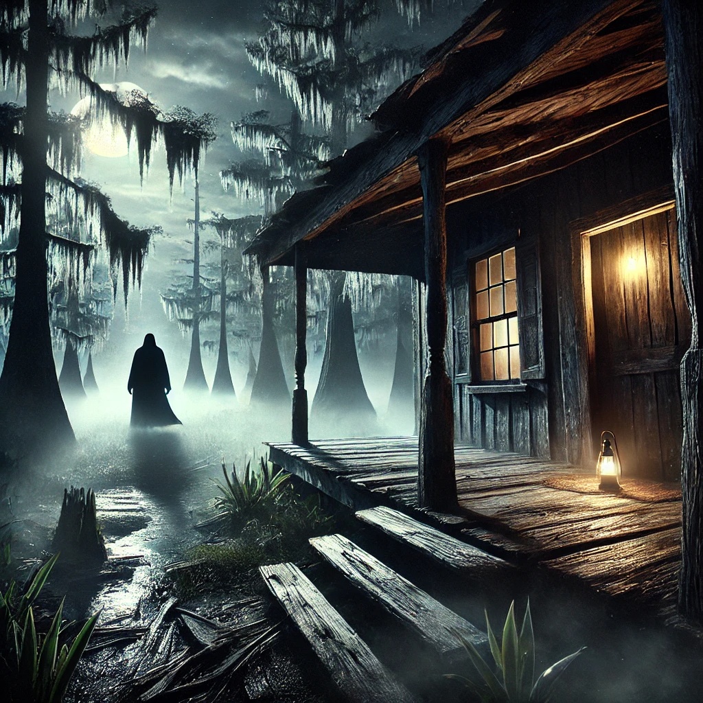 Ethereal female vocals, swampy Southern Gothic blues rock, gritty slide guitar, deep pounding drums, moody atmosphere, haunting melodies, raw storytelling, cinematic depth, slow build, smooth fade-out