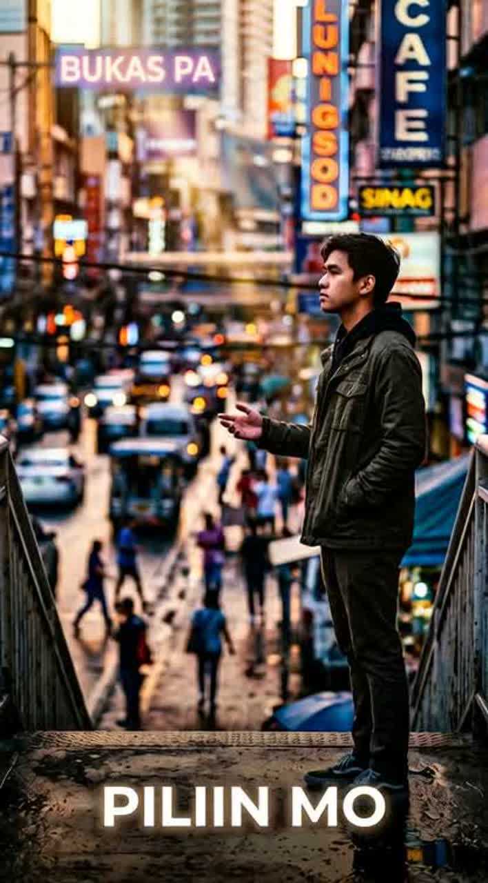 Contemporary pop-R&B in C# Major at 108 BPM, opening with spacious synth pads and subtle trap hi-hats, Verse 1 uses clean electric piano, deep 808 bass, conversational mid/high male vocals weaving English and Tagalog, accented by finger snaps, Pre-chorus introduces airy harmonies and swelling synth textures, The chorus surges with punchy drums, lush synth strings, rich male vocal stacks, and emotional Tagalog over arpeggios, Post-chorus features pulsing synth bass, chopped vocal layers, and a hypnotic Tagalog hook with chill electronic backdrop, Verse 2 layers in warm Rhodes and soft guitar plucks, Bridge strips back to raw male vocal, minimal piano, and ambient pads; pure Tagalog escalates tension, Final chorus brings layered vocal runs, bright synths, assertive bass, and crisp trap drums, Outro dissolves with echoing vocal phrases in both languages, airy pads, reverberant piano, and whispered Tag